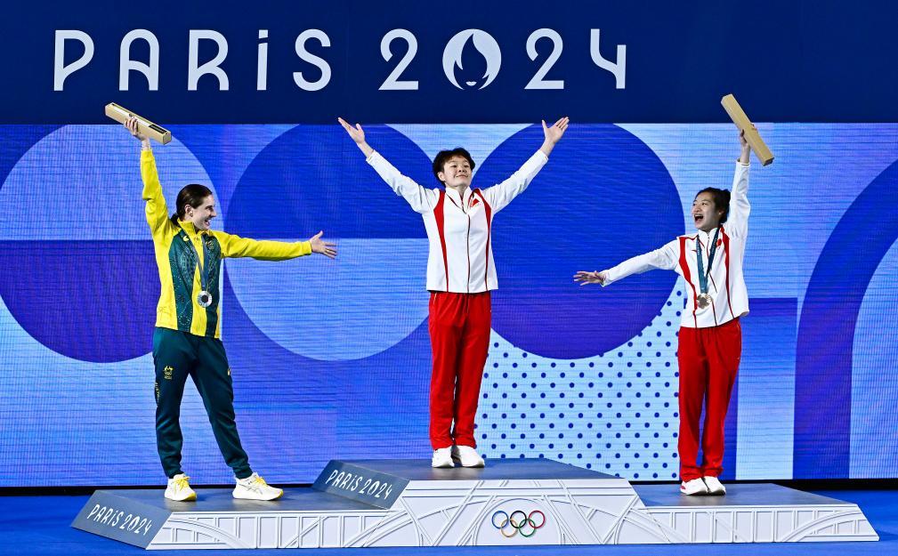 △在巴黎奥运会跳水项目女子3米板决赛中,中国选手陈艺文获得金牌,中国选手昌雅妮获得铜牌。