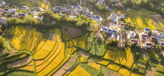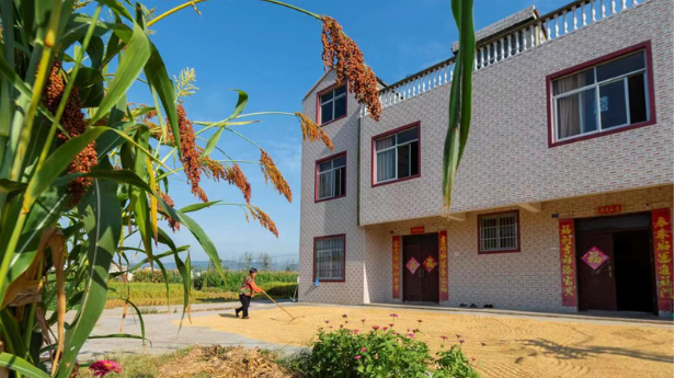 “晒秋”模式开启,农家院落里,各家屋檐下挂着成熟的苞谷棒,院坝里铺晒着剥好的苞谷粒,一派丰收的景象。