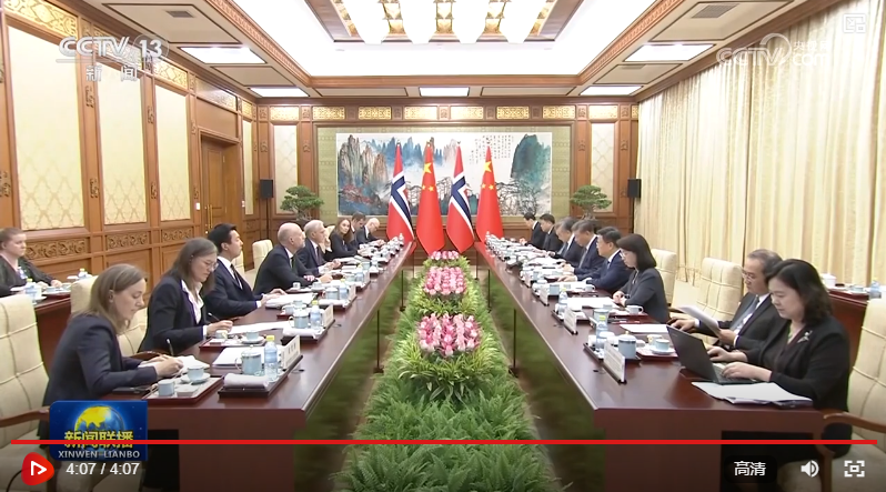 斯特勒说:“主席先生,我同意您的观点。挪中两国已建交70年,挪威也是首批和新中国建交的北欧国家之一,两国交往历史悠久,未来可以继续发展良好关系。我们看到,中国在处理当今世界一些重要议题时,比如气候变化等,可以起到重要作用。我期待着我们的对话。”