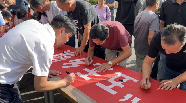 会后,参会群众、上龛乡全体干部职工、各部门负责人在印有“上龛乡‘五无乡镇’创建工作动员大会”字样的横幅上签名,每一个签名都承载着一份承诺、一份对创建“五无乡镇”的坚定决心。“这是为建设美丽上龛打基础的好事,我会带领一家老小积极参与,坚决响应号召”参与动员大会的群众代表张大叔说道。