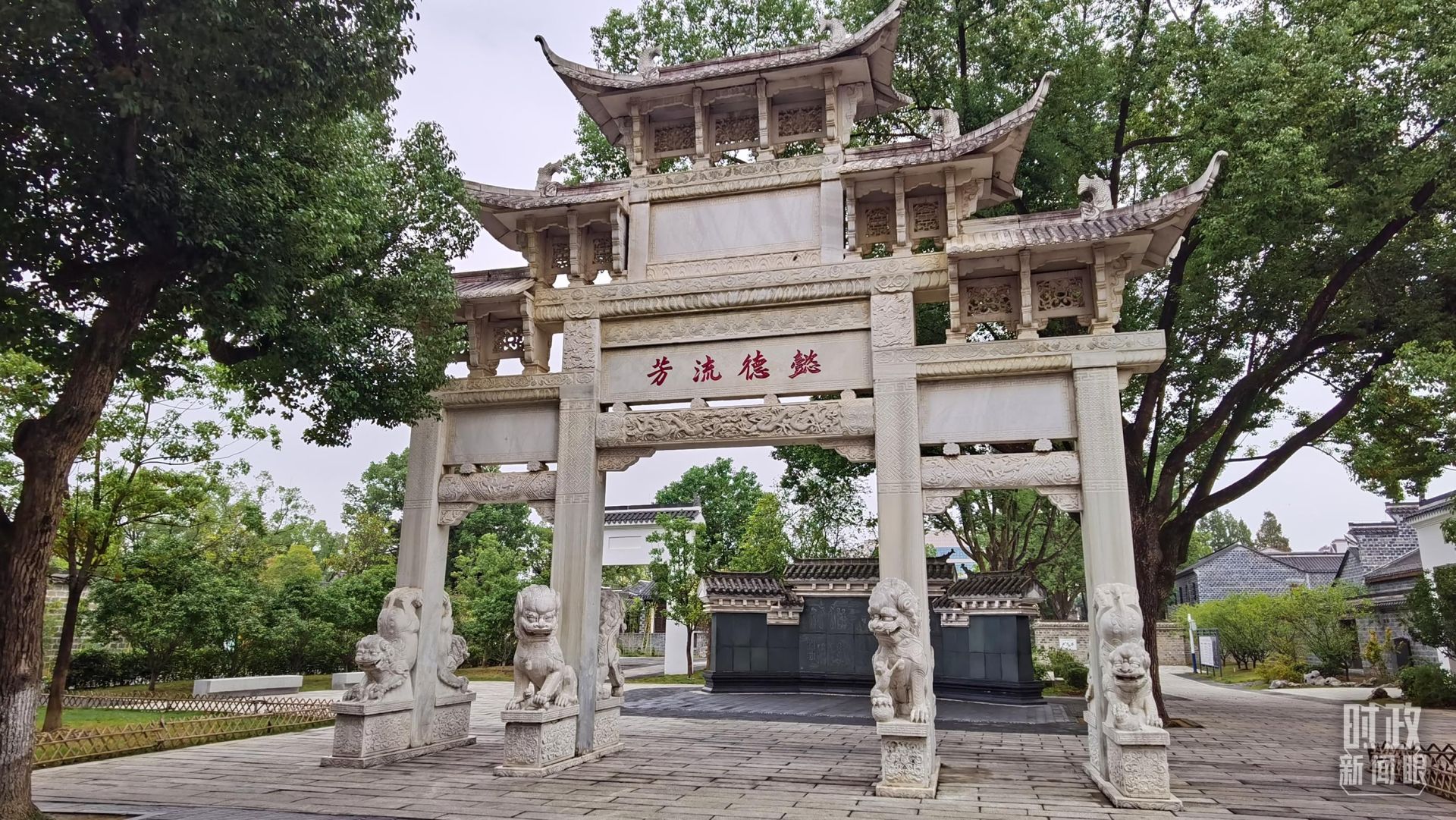 △六尺巷的“懿德流芳”和“礼让”石牌坊。(总台央视记者郭鸿、总台央广记者马喆拍摄)