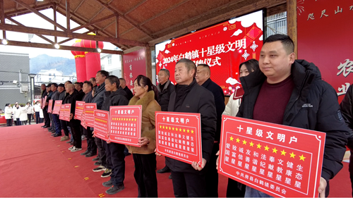房县新闻网讯 许波 通讯员 周健婷报道:祥龙辞旧岁,金蛇送福来,1月18日,白鹤镇举行2025年“ 迎新春赶大集”活动暨“十星级文明农户”授牌仪式。