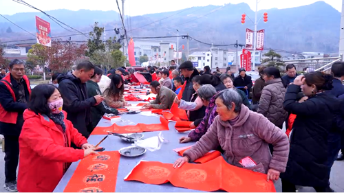 开幕仪式上,白鹤镇政府还为418户和美家庭现场颁授“十星级文明农户”奖牌,精彩纷呈的文艺演出和有奖问答互动也是轮番上阵助兴,让大家沉浸其中,乐不思蜀。《财神到》、《国粹变脸》瞬间将现场氛围点燃,涵盖消费、创文、应急、医保、教育等知识点的有奖问答互动更是趣味横生、精彩连连。在送春联下基层活动中,县文联书法大家们挥毫泼墨、笔走龙蛇,将一副副饱含对未来美好祝福的春联送到村民手中。