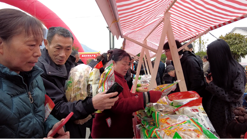 据统计,年货节开市当天共售出当地农副土特产品8千余斤,销售额达30余万元,村民们喜庆而来,带着沉甸甸的年货满载而归。