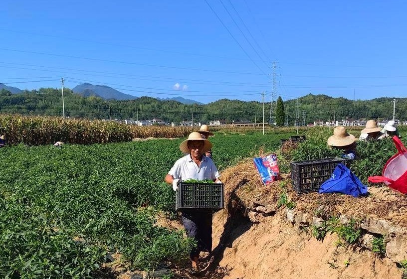 线椒产业的蓬勃发展,不仅壮大了村集体经济,更给当地村民带来了“家门口就业”的好机会。每到采摘旺季,种植基地便优先吸纳村里的留守妇女、老年人、脱贫户等群体,提供线椒采摘、分拣、装车等岗位,实行“按天计酬、即时结算”,日均工资100元。“以前在家只能带孙子、做家务,现在到基地摘辣椒,每天能赚100块,一个月下来能有2000多块收入,还不耽误照顾家里,比出去打工划算多了!”正在分拣线椒的村民刘大姐一边麻利地挑拣着辣椒,一边笑着算起“增收账”。据悉,今年线椒种植季,基地累计提供临时就业岗位100余个,带动40余名村民实现“顾家、挣钱两不误”,人均增收超4000元,让村民切实分享到产业发展的红利。