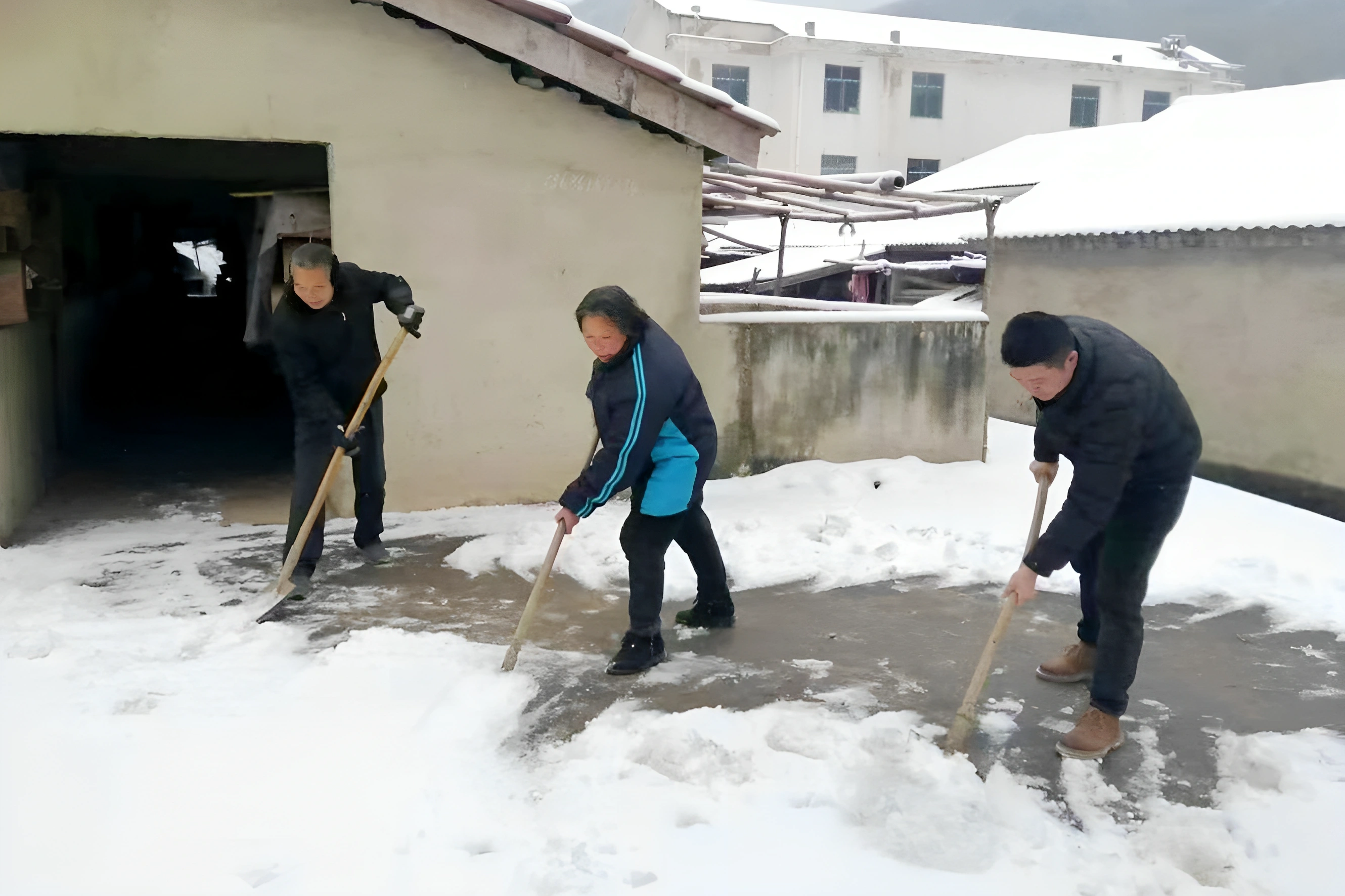 群众所需,便是工作所向。面对雪情,县人社局驻堤坪村工作队迅速响应。天刚蒙蒙亮,队员们便拿起铁锹、扫帚等工具,奔赴村内主要道路和公共区域,组织发动村民共同开展清雪除冰工作。
