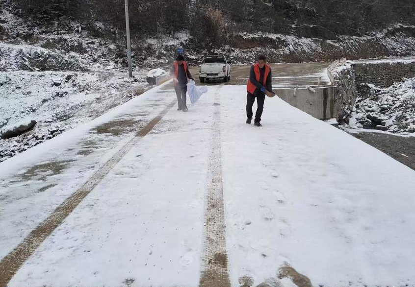 房县新闻网讯 通讯员 张伟 报道:近日,受持续低温雨雪天气影响,白鹤镇雷家冲村部分道路出现积雪和结冰现象,给村民出行和生产生活带来较大安全隐患。为确保道路安全畅通,保障群众正常生活秩序,村两委迅速行动,第一时间组织党员干部及志愿者开展道路撒盐除冰工作,用实际行动温暖寒冬。