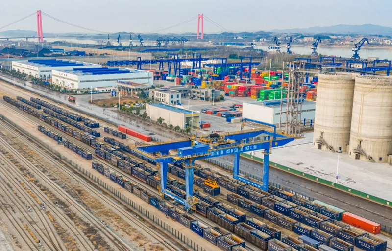而在黄石港的泊位上,来自美洲、澳洲的万吨粮船频繁靠泊。这些进口粮食在此“散改集”,通过铁水联运无缝接入国家“北粮南运”“外粮内输”的大通道,直达西南省份。