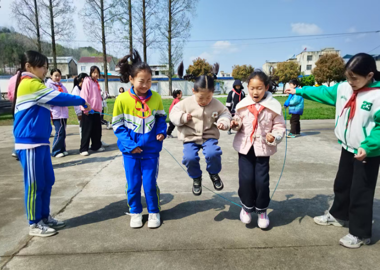 新学期,学校精准拆解运动时长,实现2小时体育活动“超额达标”:早、中、晚各30分钟大课间搭配40分钟体育课,日常运动时长达130分钟;下午,开设25分钟“小胖墩自由训练营”,为有需求的孩子加练;同时,学校打造特色体育社团,把“跳房子、跳绳、踢毽子”等有趣的体育项目引入教学,让运动更有吸引力,成为学校新学期体育课的亮点。