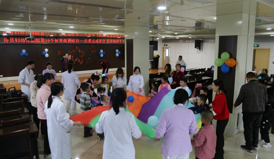 房县新闻网讯 通讯员 李帆 报道:4月2日下午,房县妇幼保健院举办以“用爱点亮星空”为主题的2026年世界孤独症日亲子公益活动。此次活动由房县残疾人联合会主办、房县妇幼保健院承办,近60名在训孤独症儿童、家长、康复治疗师及志愿者欢聚一堂,在互动与陪伴中传递温暖与力量。