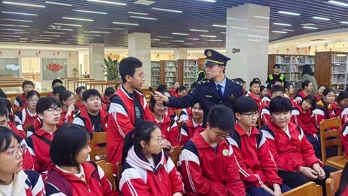 活动当天,同学们有序进入县图书馆。在图书馆老师指导下,大家系统学习了图书分类、借阅流程及书籍管护技巧,随后挑选心仪读物,静心品读,沉浸在浓厚的书香氛围中。县执法大队干警带来一堂生动的“阅读+法治”知识讲座,教大家辨识盗版书籍、辨别网络不良信息,并结合真实案例讲解如何维护阅读权益。随后的有奖问答环节,同学们踊跃抢答,在轻松互动中巩固了法律知识,现场掌声与笑声不断。