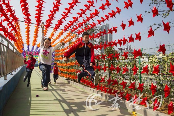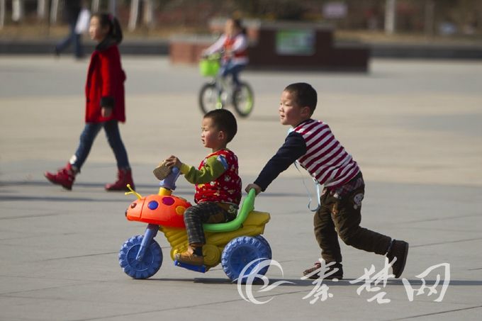今日十堰最高气温达24.4℃,户外运动的小朋友脱去外衣