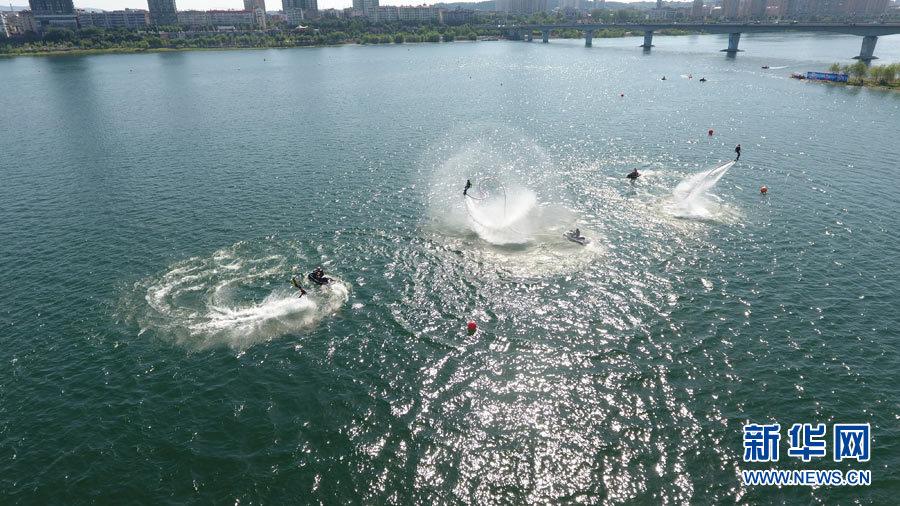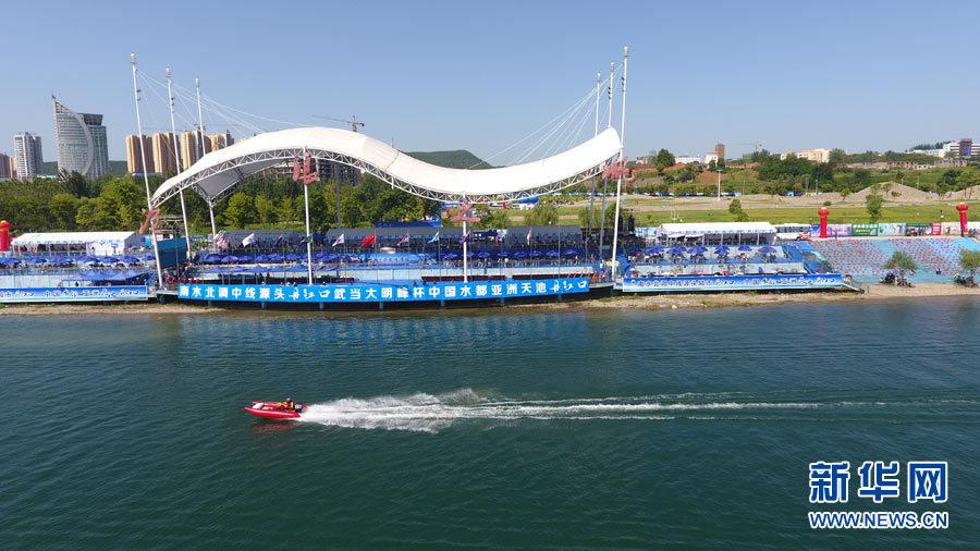 图为航拍中国丹江口“武当大明峰杯”亚洲摩托艇公开赛现场。新华网 闵任之摄